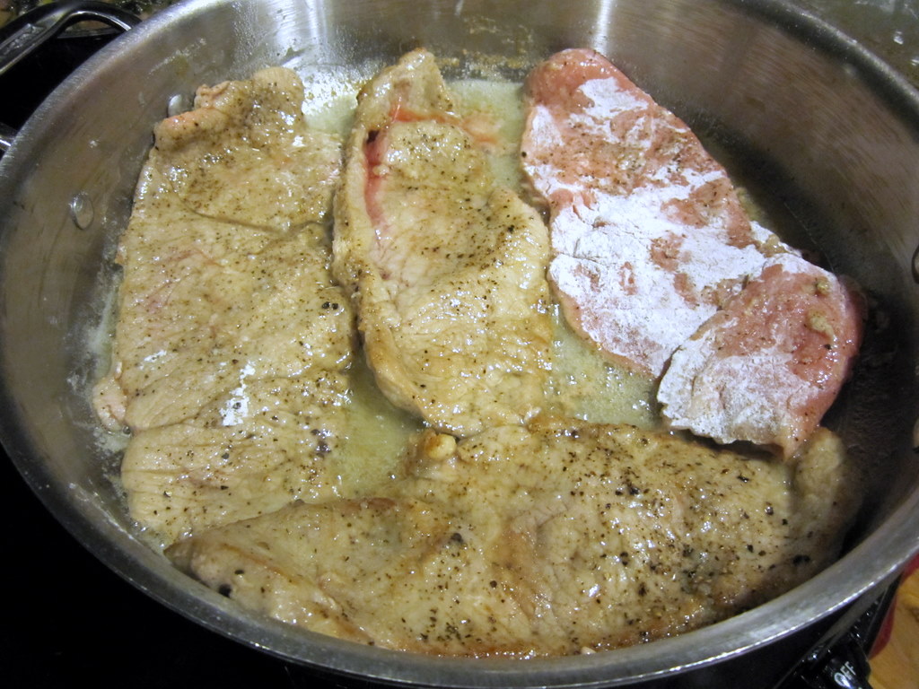 1 1/4 pounds veal scaloppine (8 pieces), pounded 1/8 inch thick