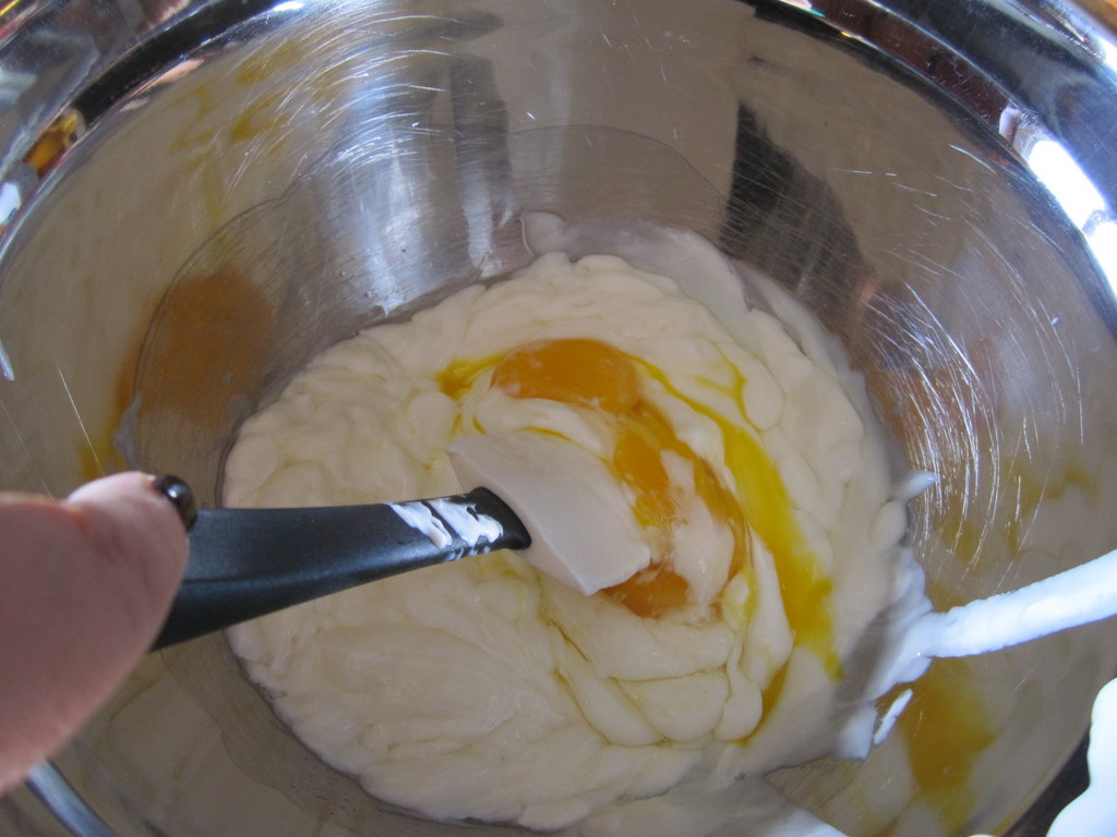 Gently fold the yogurt mixture into the flour mixture until just combined (with a rubber spatula or mixer on low speed).
