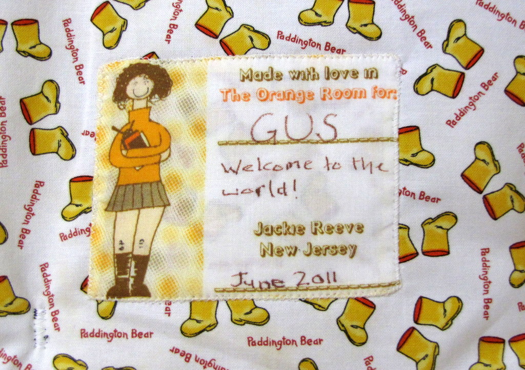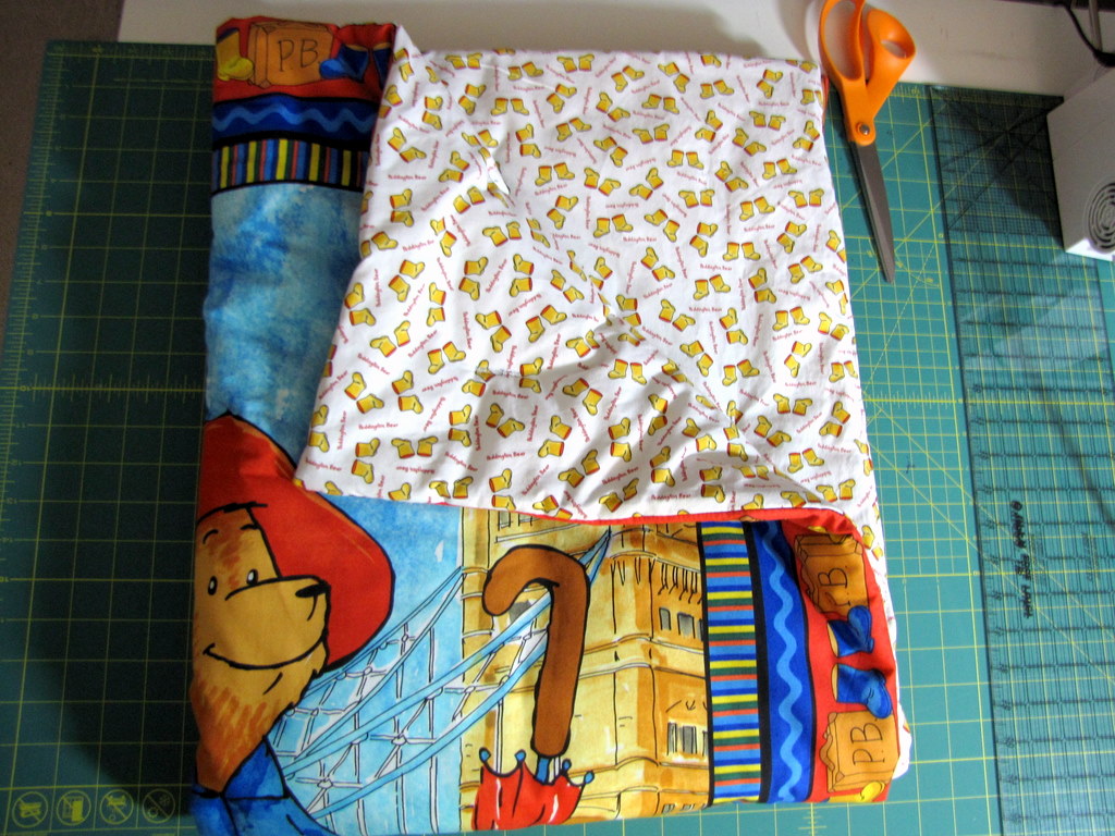The hardest part was deciding which background fabric (I have the boots in red, too) and which stuffed Paddington to get. I had no idea that there are versions of Paddington with no boots, yellow boots, blue boots, and red boots. Yellow boots won out in the end.
