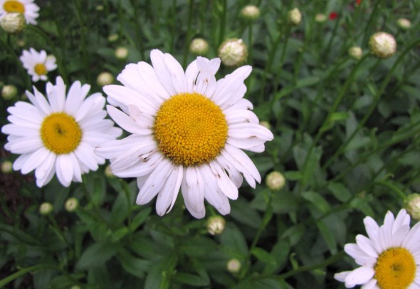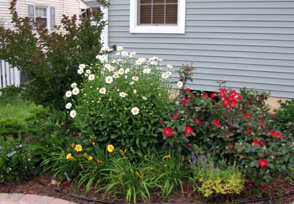 Check out how incredibly ginormous our daisy bushes have gotten since everything on the patio was planted last summer.
