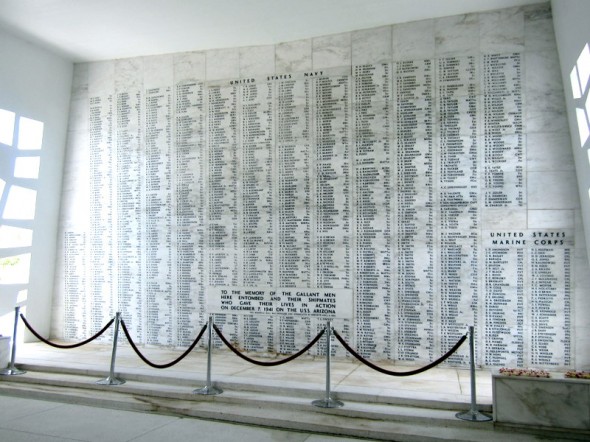 Adam told me later that I missed the small plaque off to the side of the main memorial wall. These are men who survived the Arizona but chose to have their remains interred on the ship. When they pass away, Navy divers take their remains down to the Arizona and bury them with their shipmates. There are about 30 names so far.