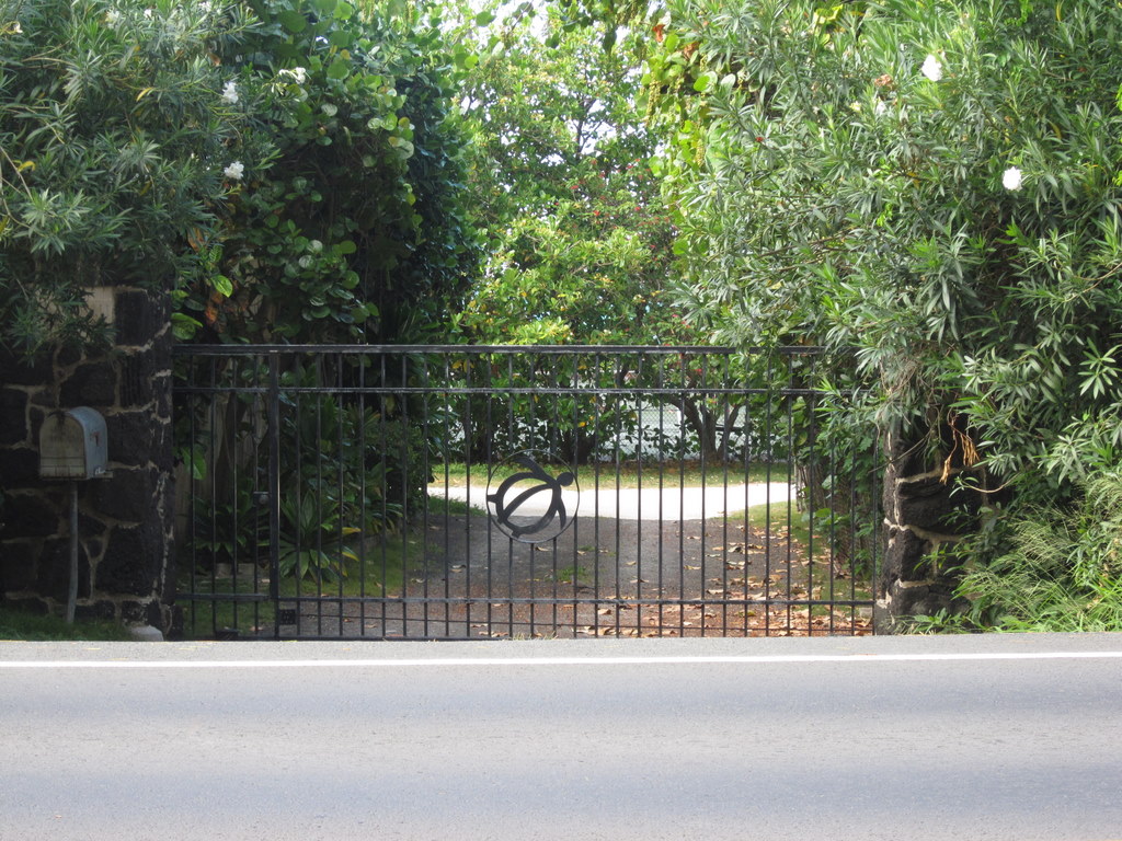 The gate to Robin’s Nest from Magnum. Lots of trees, but you can kind of see the tennis court through them.