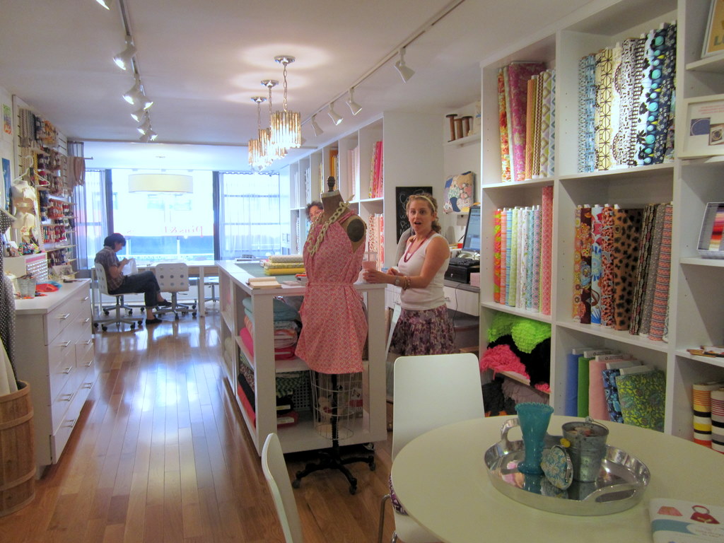 Meredith and I also ventured over to Pins & Needles, the new quilt shop on the Upper East Side. It’s an adorable, well-edited space with just the right combination of prints. Including some hard-to-find (and incredibly pricey) sproutdesign prints. I’ve actually lusted after the Australian brand’s fabrics for a few years now, but I’ve never seen them in shops here. I splurged on a 1/2 yd of this great car print.
