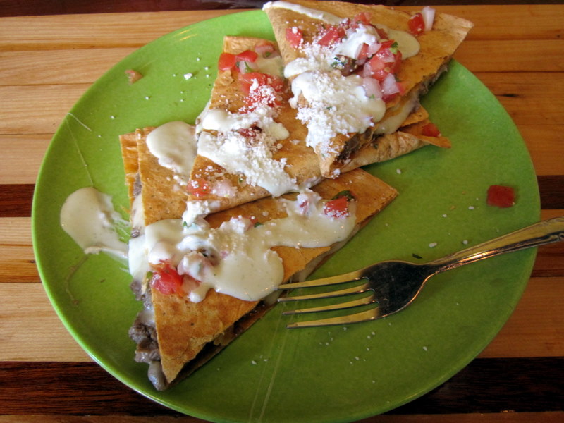 A new branch of Pop’s Garage taco bar has opened in Shrewsbury, and Adam and I checked it out today. I actually had no idea there were others, we sort of stumbled upon it and thought it looked great. And it was. The carne asada quesadilla was excellent; I loved the slightly sweet cilantro crema on top.