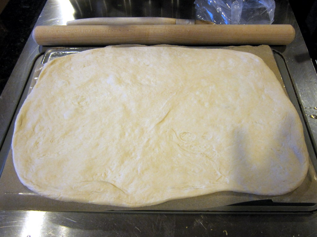 Unroll the dough on the parchment paper and pat into a 9-by-12-inch rectangle.