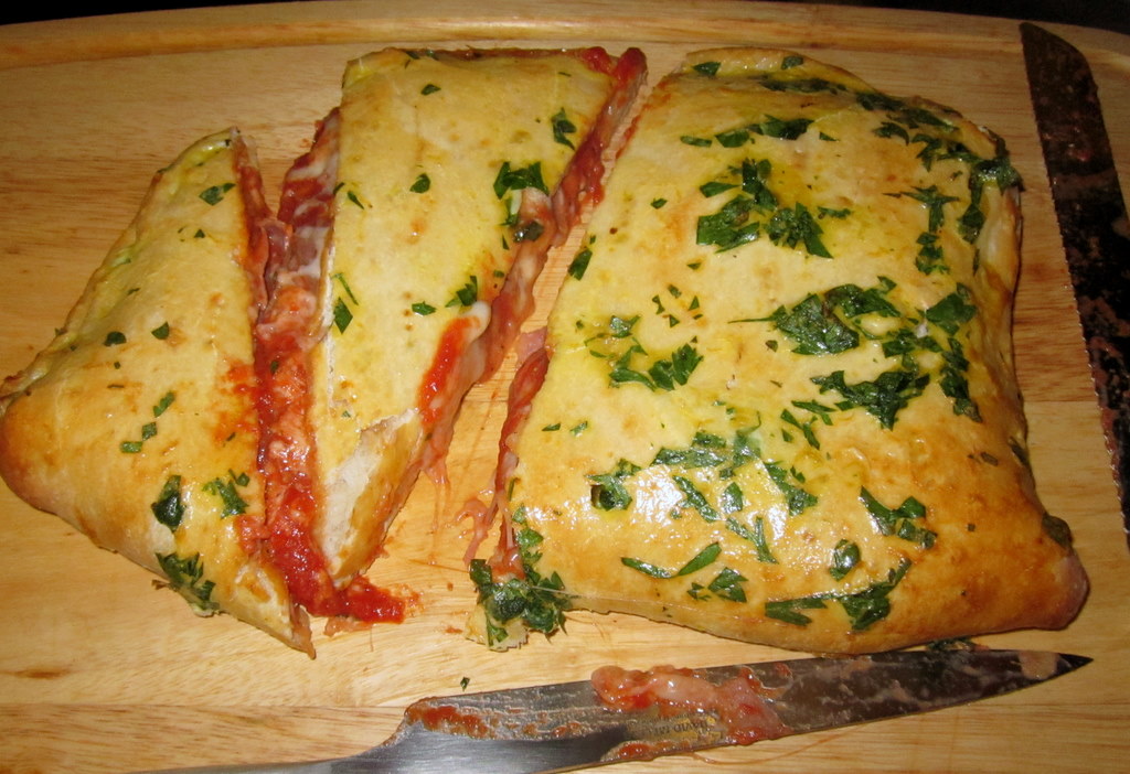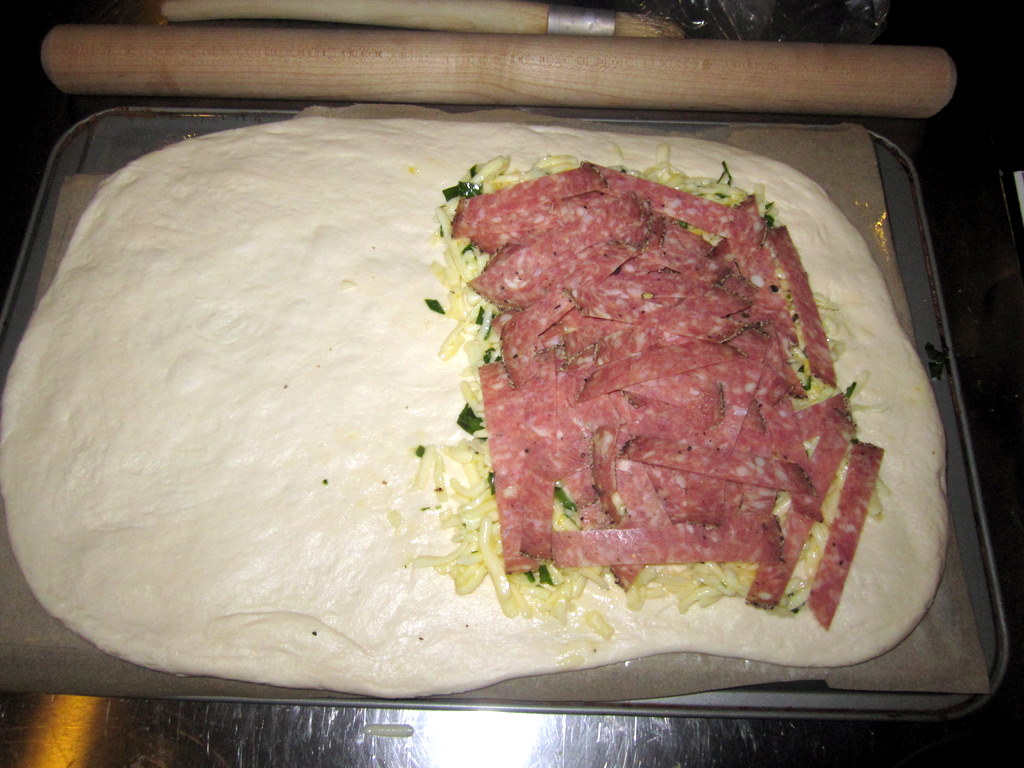 Salami-Mozzarella Calzone (adapted from the May 2011 Food Network Magazine recipe)