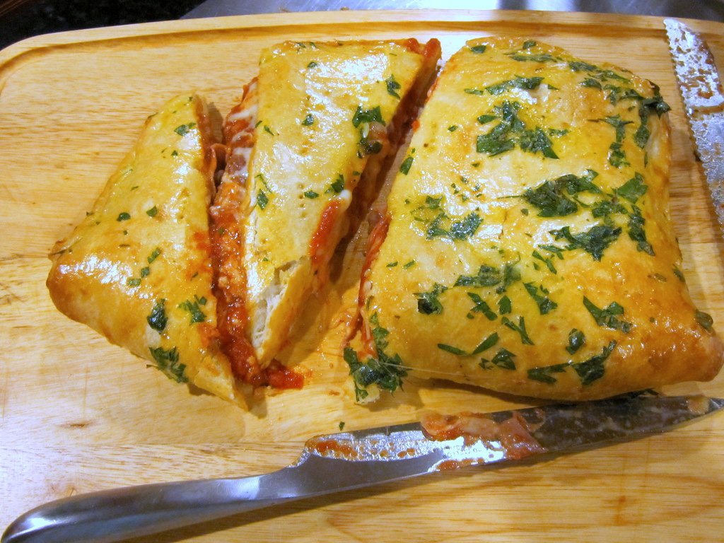 So anyway, I was intrigued by this calzone recipe. It seemed like an interesting way to try something new without traumatizing myself (although it was hard for me to put that provolone in there). And it was amazingly good, honestly. But I’ll admit something: I’m not that into giardiniera. It just doesn’t feel like the Jersey way to treat anything pizza-related, so I traded it for good old pizza sauce. This was really good, and I’ll make it again and might even change up the fillings. The one thing I’ll say is that I didn’t use the whole 1/4 lb of salami and it was still pretty salty. Also, I shouldn’t have put the entire remaining egg mixture on the top of the calzone. A light brushing would’ve been ample. But other than that…awesomely yummy.