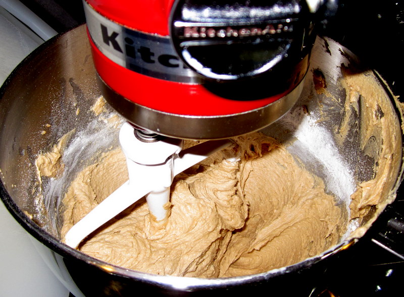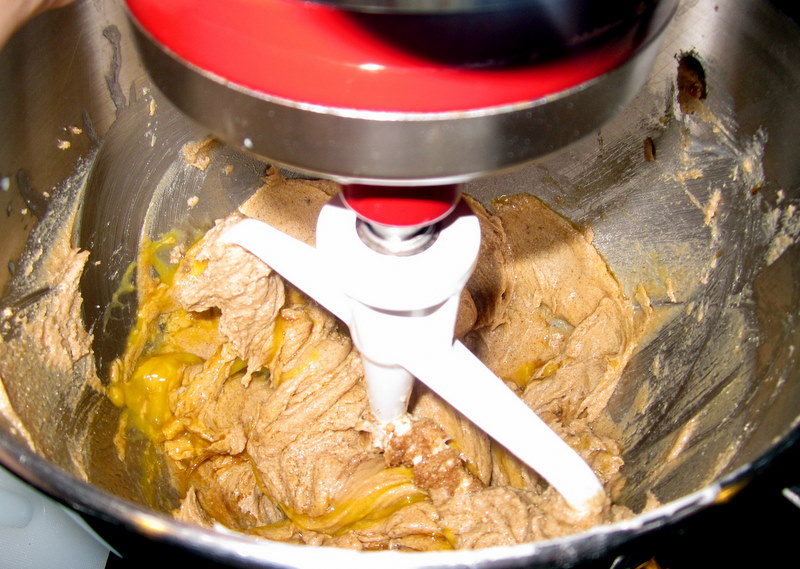In a stand mixer fitted with the paddle attachment, cream the butter, brown sugar and granulated sugar on low speed until incorporated, then increase to high speed and beat until light and fluffy.