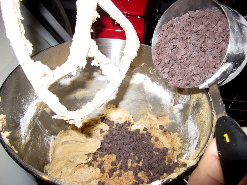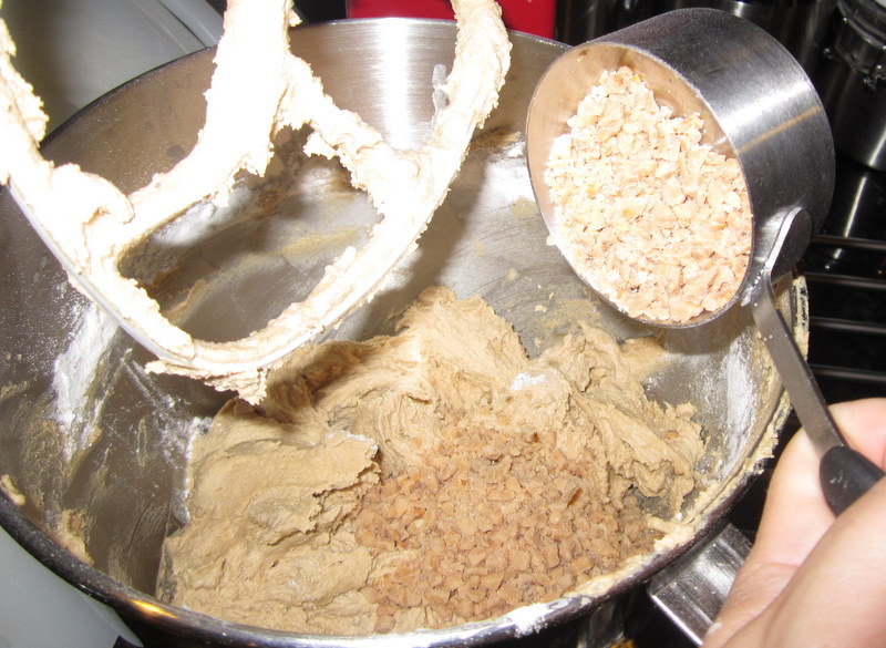 I made these amped up chocolate chip cookies, from an Adam Gertler recipe in the May ’11 Food Network Magazine, after dinner tonight. They were delicious, I think I may be addicted to toffee bits in my cookies.