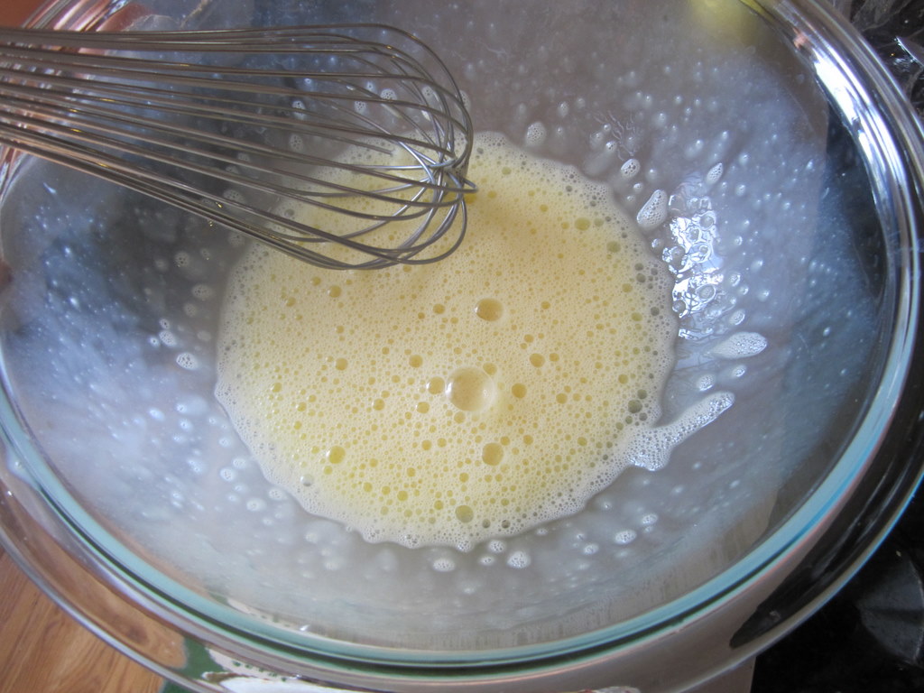 Whisk eggs in another bowl until frothy and light, about 1 minute.