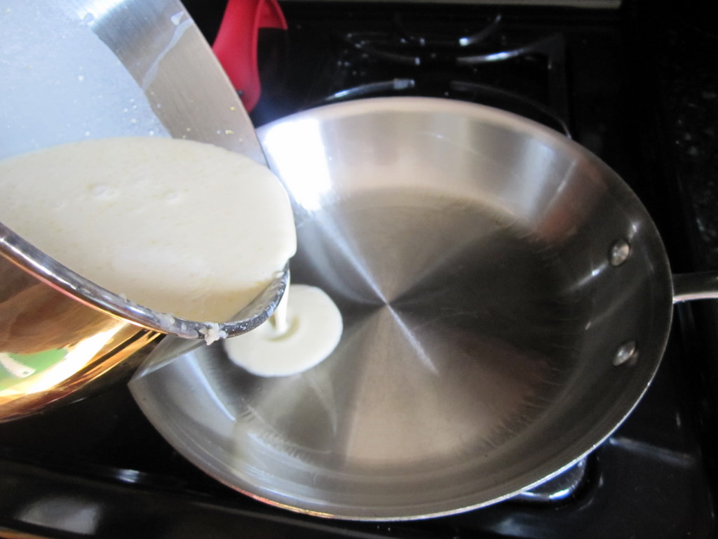 Carefully pour batter into the hot skillet.