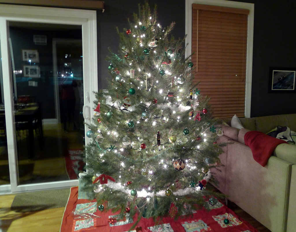 I have a lot to be thankful for this Christmas, but not a lot of pictures. It was a small and cozy holiday this year, with Adam and I sleeping in (till 9:15) and opening our presents while eating chocolate croissants and pumpkin muffins, with For Your Eyes Only on in the background. Perfection, we definitely embraced the idea that this is the last quiet holiday we’ll be having for many years. My mom came over at 2 for a roast chicken feast (note to self: 8 lb. chickens DO exist, and they take about 2 hours to roast at 375 with another 15 minutes at 450 for super crispy skin). Really crispy roast potatoes, sausage balls, cippolatas wrapped in bacon, peas. It was great!