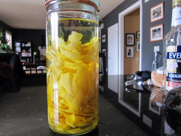 Combine the zest and the Everclear in an airtight container and let stand at room temperature for at least 2 days or up to 1 week (I left mine for a week and a day!).
