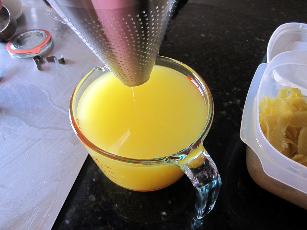 Refrigerate the mixture overnight. Pour liquid through a large sieve to filter out the zest (discard the zest).