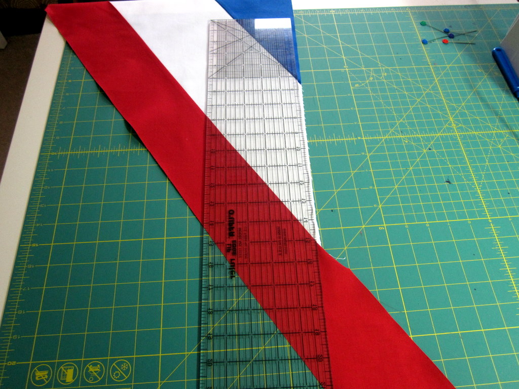 That’s how I started. Everything is at a 60 degree angle, so then I figured out the sizing for the white and red strips in each corner of the flag.