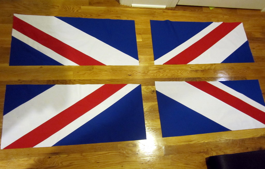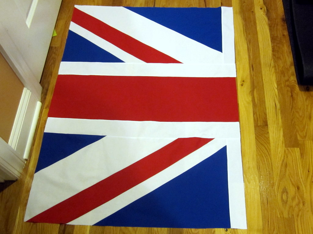Thank you! I’m an intermediate, too, I would say. It did make me a little crazy figuring this out, but that’s because it had to fit the backing fabric I used. These Wikipedia links really helped me a ton: http://en.wikipedia.org/wiki/Union_Jack#Specification and http://en.wikipedia.org/wiki/File:United_Kingdom_Flag_Specifications.svg. The second one is awesome because it shows the exact dimensions of everything on the flag, so if you can scale up the math a little to make it the size you want, it’s really straightforward. Or you can make it actual flag size and put a thicker white border around it. Good luck! I’d love to know how it turns out!