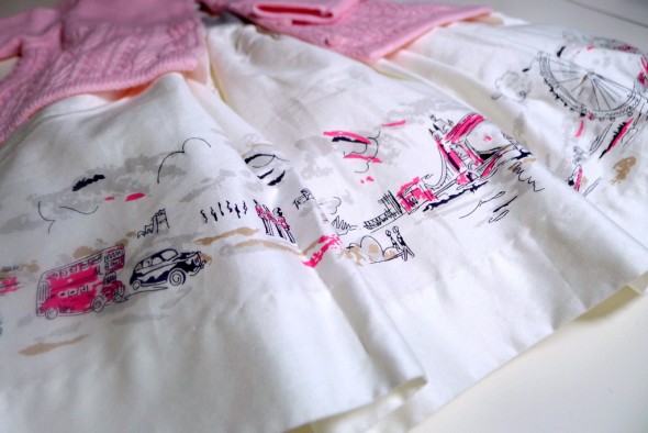 I was at Janie and Jack the other day looking for a baby shower gift for a sorority sister. They were having a huge sale, and I just happened to see this London dress (hugely discounted). I cannot possibly overstate my excitement about this outfit, which of course had to have a pink cardigan to go with it. It was the only one left, and it was 6-12 months. This will either be H’s outfit for Morgan’s wedding in England in August (she’ll be 5 months and might just fit) or it will be her Christmas card photo dress. I am completely smitten with this whole little girl business.