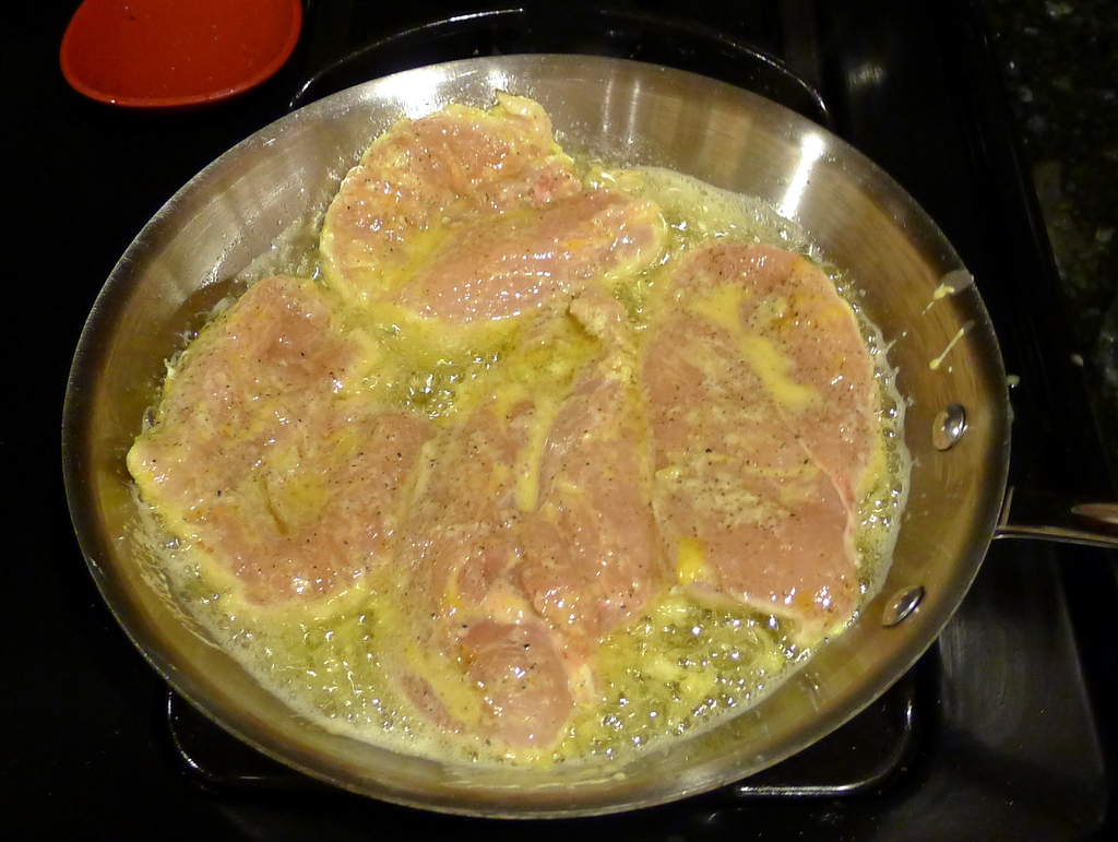 Add the cutlets to the skillet and cook until golden on the bottom, about 2 minutes.