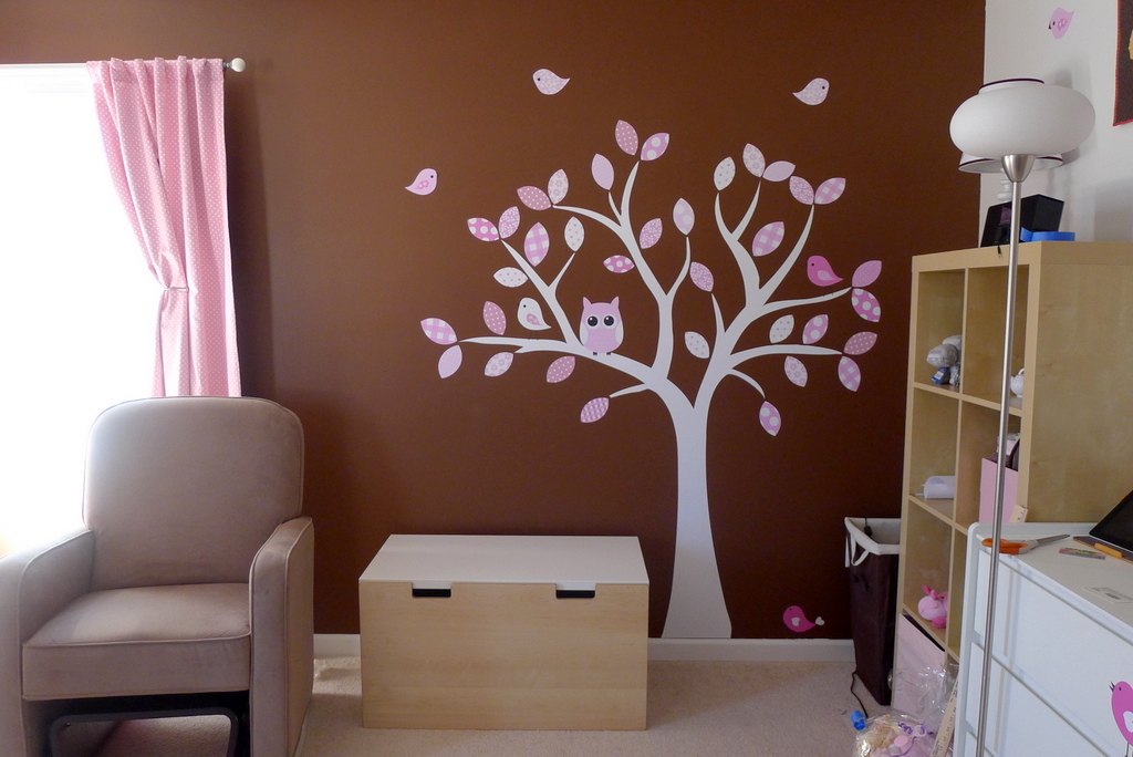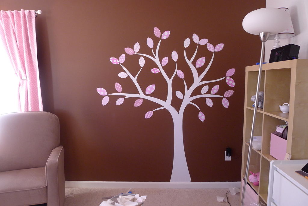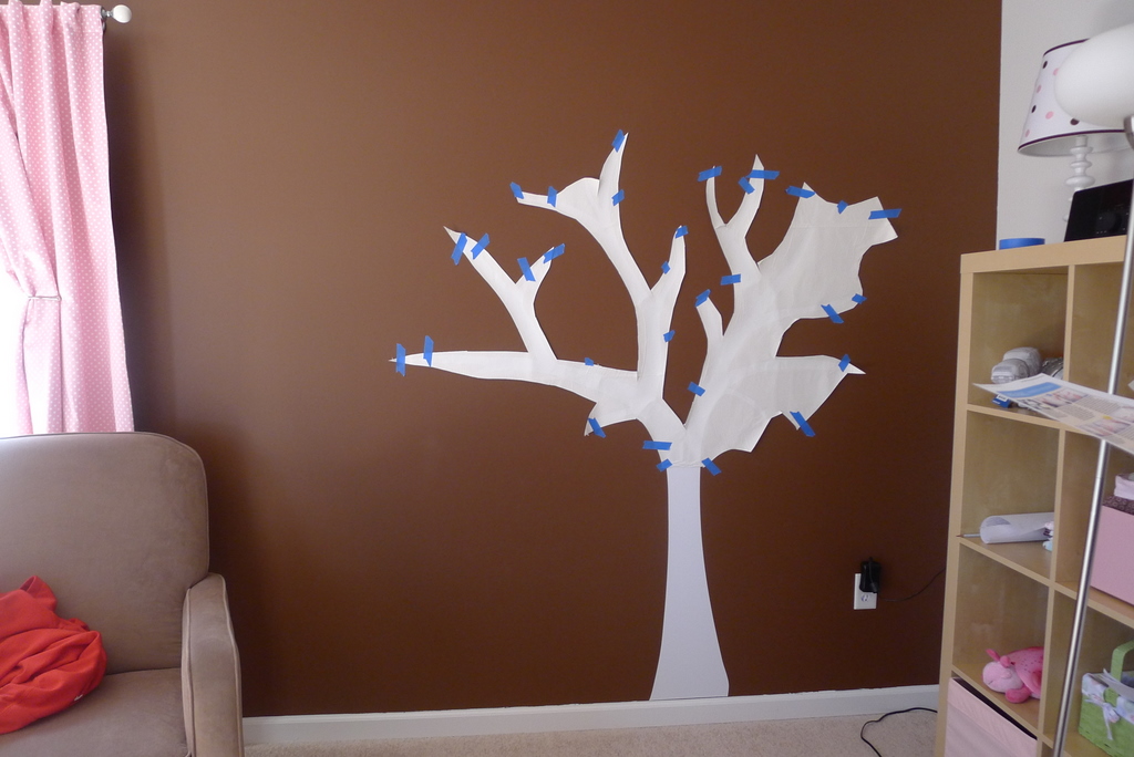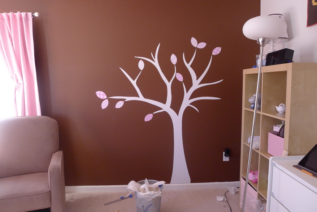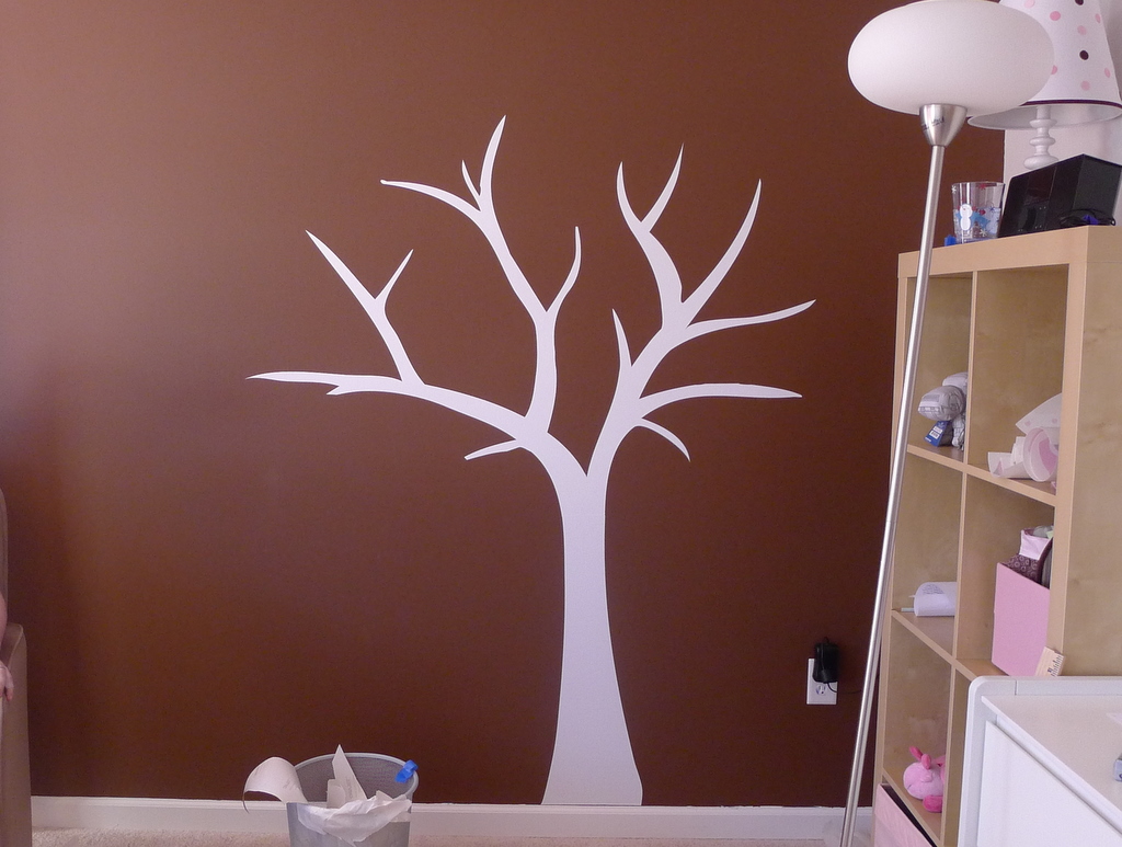 Today Adam and I hung this tree from Couture Decals in the baby’s room, and I’m in love with it. Jayne did such a great job helping me customize the design to match our color scheme and style. I’m only posting photos of the tree, but some of the birds are scattered around her room, I’ll post those the next time I update the overall progress on the nursery.