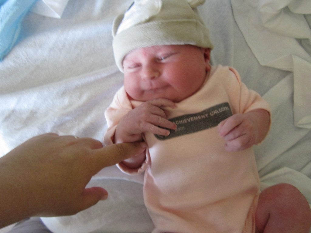 She is lovely, Jackie! Congrats! (Also, that onesie rocks.)