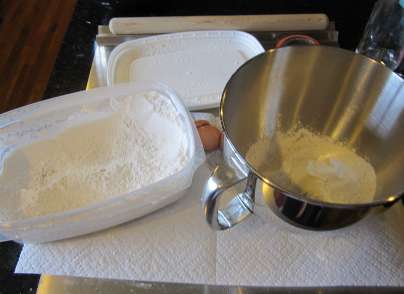 I went with Alton Brown’s recipe for “instant” pancake mix, which makes a bulk quantity of the dry ingredients that you can then scoop out whenever you want to make pancakes. I love this idea. And I followed his directions as closely as I could, but I found that the actual pancake batter needed more buttermilk to get to the right consistency. So I’ve slightly tweaked the recipe to reflect the amount I used. First is the mix recipe, followed by the actual pancake recipe.
