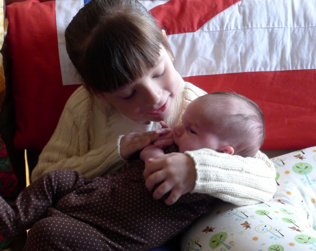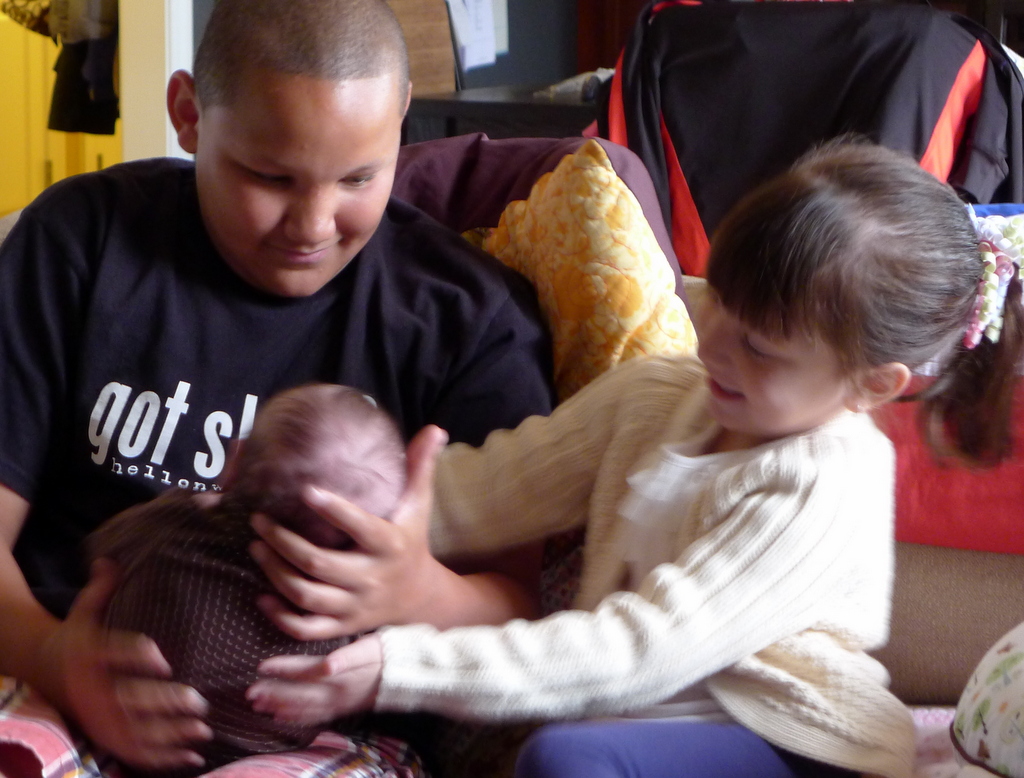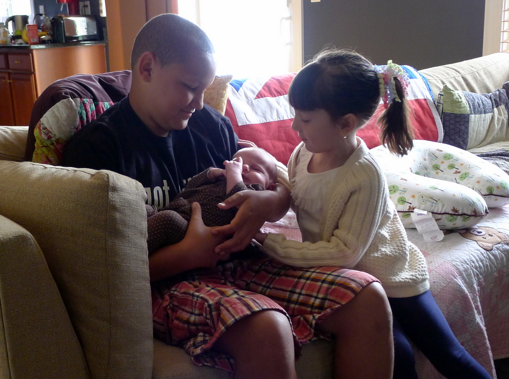 Yesterday my brother and Kathryn brought his 2 kids over to meet the baby. We’ve been trying for a few weeks to get the kids together, but we’ve had a lot of spring illnesses flying around lately.