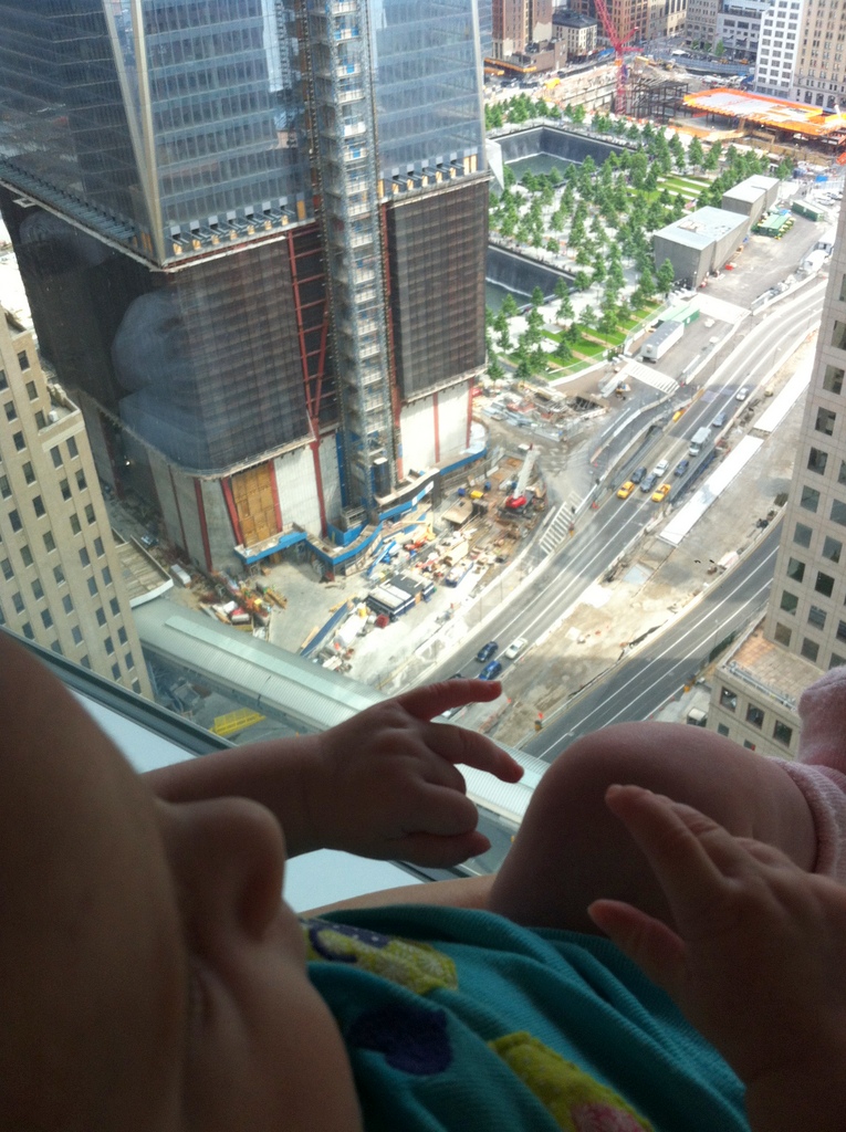 Adam was getting a bagel on the far corner of the farthest tower that morning, we told H about it. That was a bit of a moment, I hadn’t been to Adam’s office since the memorial was finished and the new tower was so far along. And it was surreal, to think this will seem like ancient history to H as she grows up.