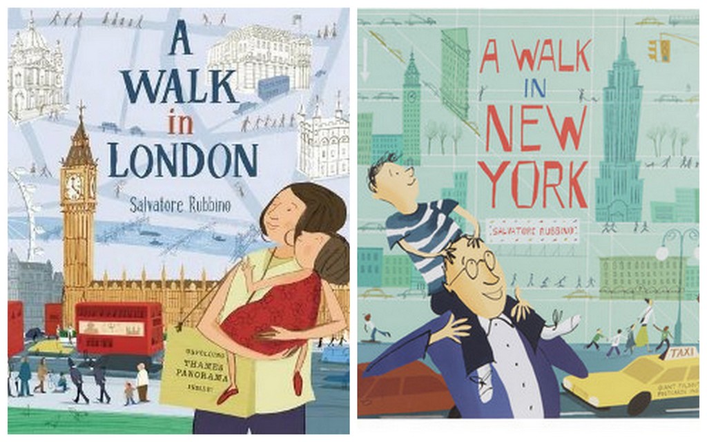 I picked up these two titles by British author and illustrator Rubbino last week. I remember skimming through his first book, A Walk in New York, in a bookstore display of NYC picture books a while back. But I never read it all the way through until I saw its companionA Walk in London last week.