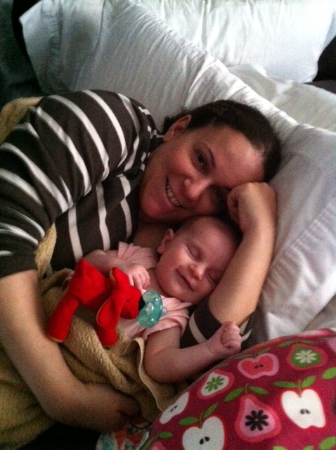 She still smiles in her sleep. This mommy business is the cat’s pajamas.