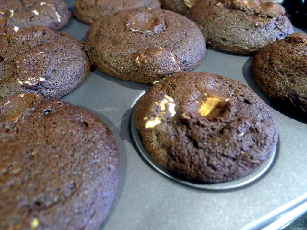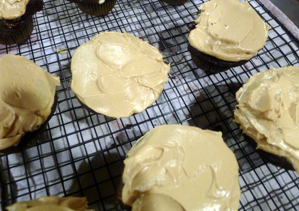 I haven’t had much free time since H was born (I can’t believe she’s 3 months old already!), but I did take the small-scale advise to heart and tried out one of the recipes from the book just because. About a month ago I made the Caramel Buttercream from the “Grandma Dotty’s Rocky Road Cupcakes” recipe. Adam’s a little funny about stuff in his cupcakes, so rather than make the chocolate chip-filled, Marshmallow Fluff-stuffed Rocky Road cupcakes I used our go-to Dark Chocolate Cupcakes recipe. I didn’t have any Fluff anyway, but at the last minute I thought I’d see how he did with some mini marshmallows in the batter. Result: he didn’t mind them, but they also basically disintegrated and brought nothing to the table. If anything somehow the cupcakes were drier than usual.