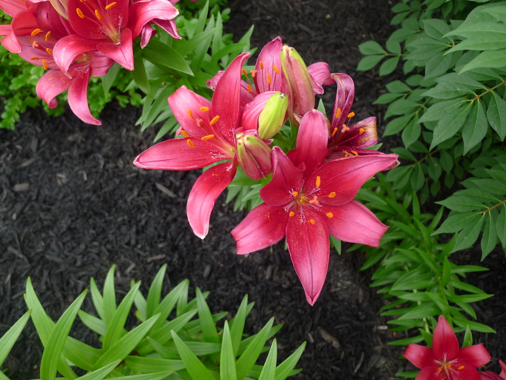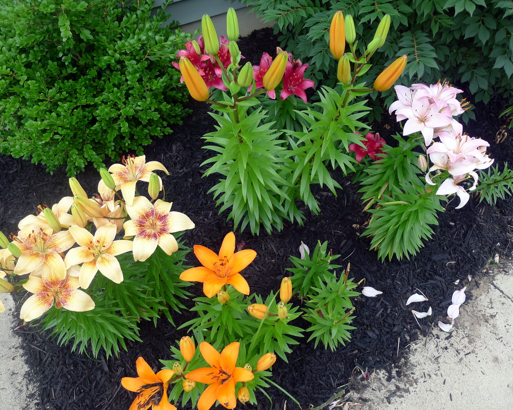 I love lilies. All kinds of lilies: day, calla, regular ol’. That’s what our front garden is filled with. I finally got our front flowerbeds weeded and mulched last week, and the flowers are looking so gorgeous this year! We still have a giant space in the middle of our big bed that seems to be a deathtrap for whatever we plant there, but otherwise it’s looking great.