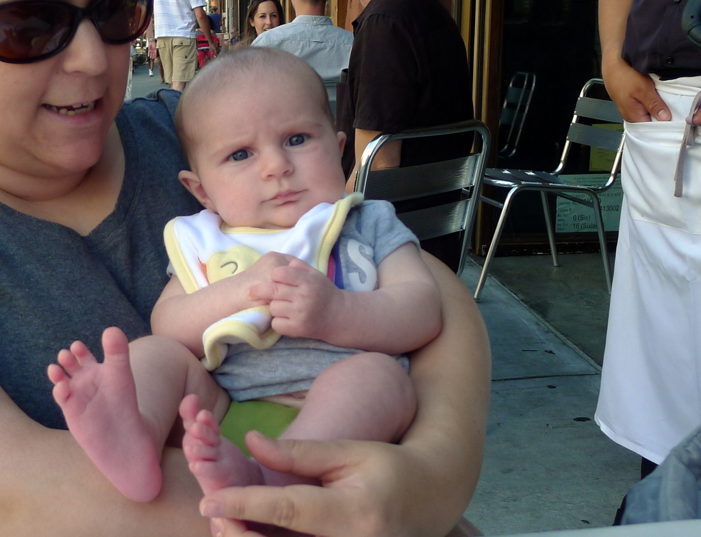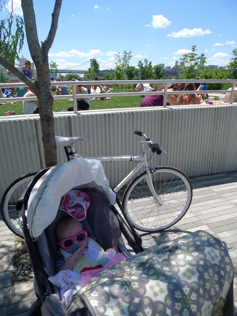 But you couldn’t move for hipsters. That and terrible cell reception meant meeting up with Maggie at 1pm actually became 2 by the time we found each other. And the market was in an unshaded lot, so it was all open sun and long lines for food. It just wasn’t going to work with H on such a hot day. If it was drizzly, or even if I didn’t have the baby, we might have been able to handle it. There were definitely some cool food spots there. But the insanity of trying to find each other in such a crowd just killed it for Maggie and me. We had a long discussion about our uncoolness because we should like trendy urban stuff like this but actually…don’t.