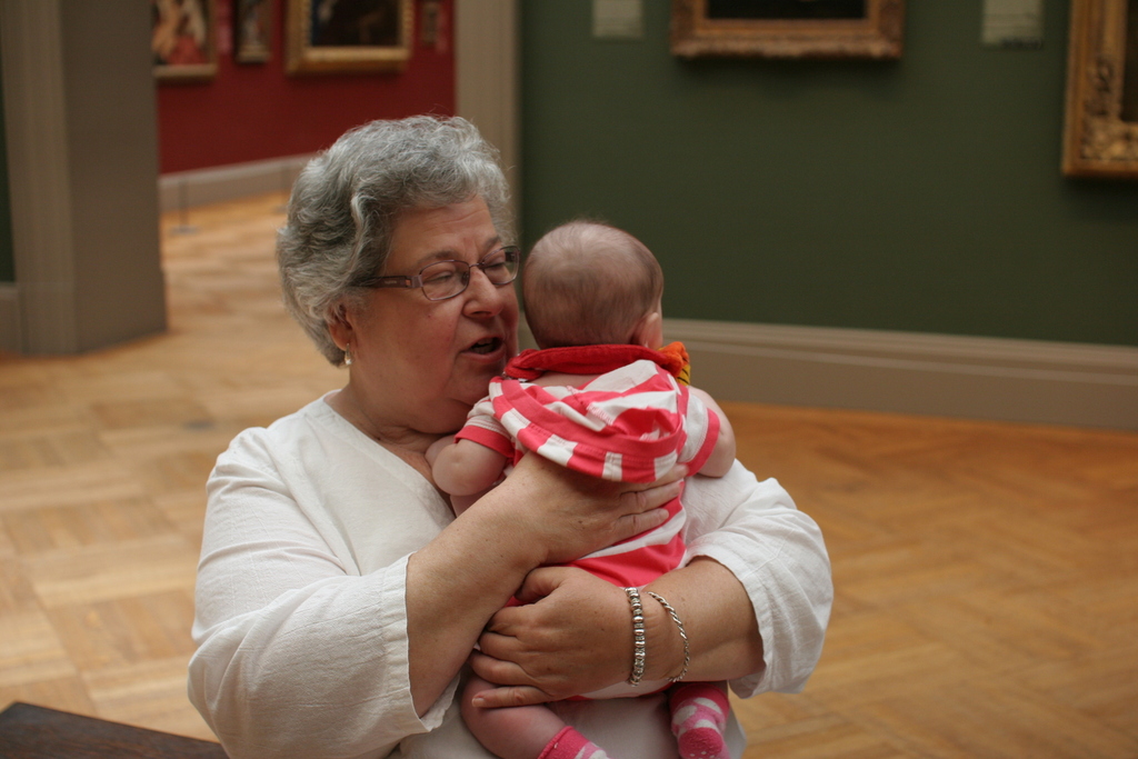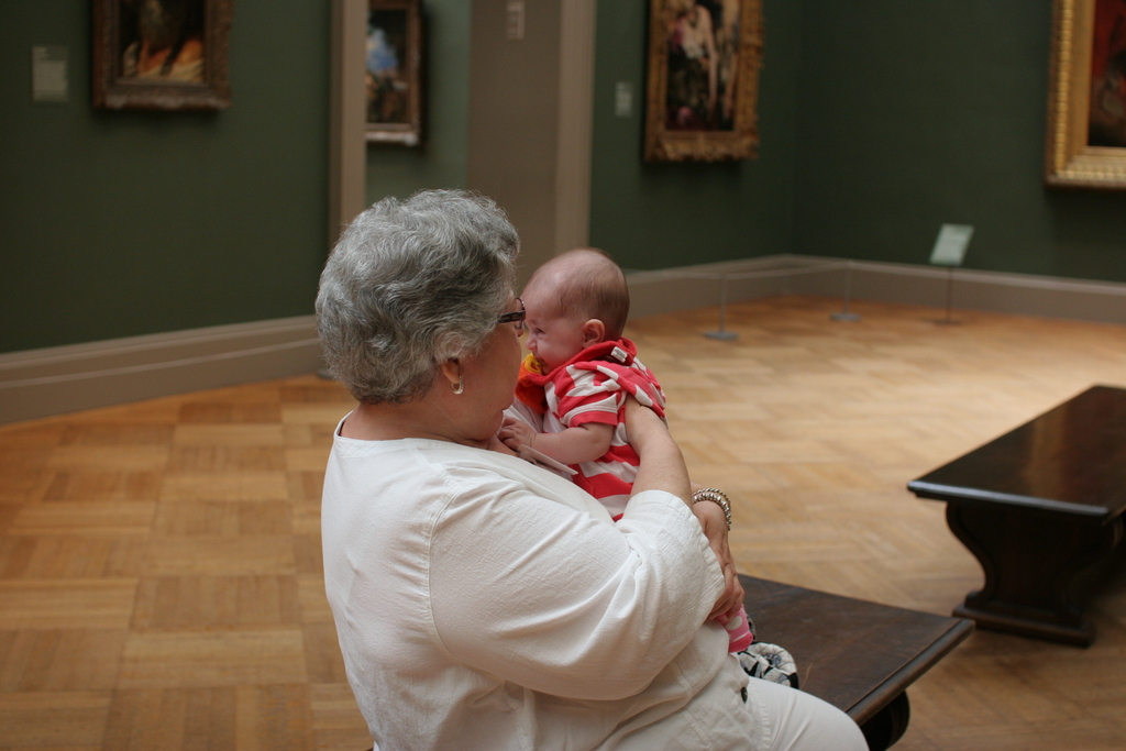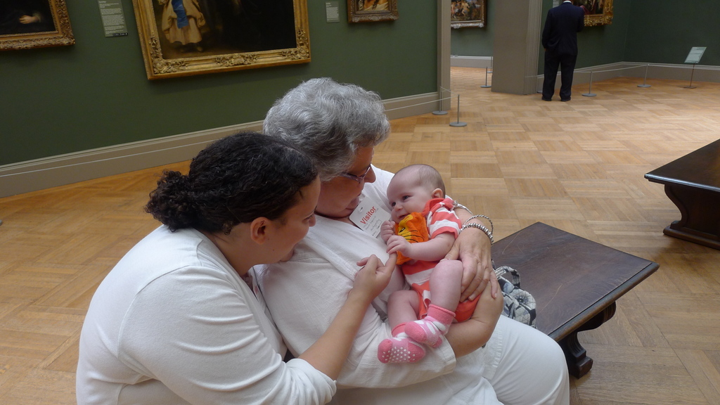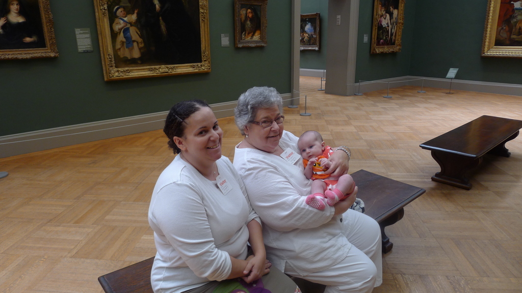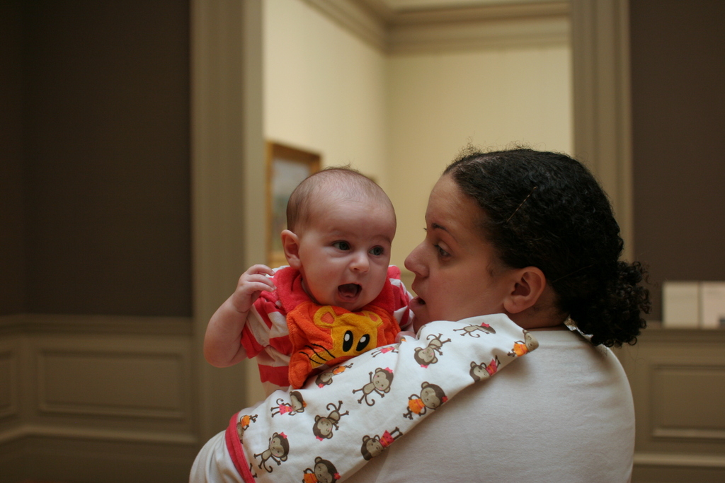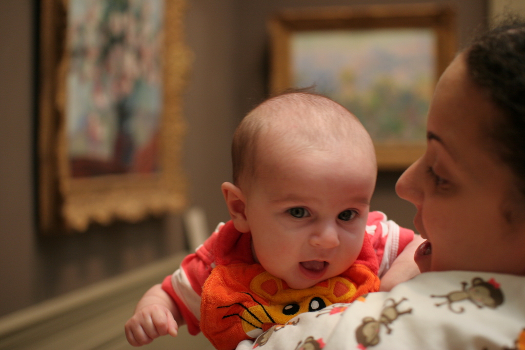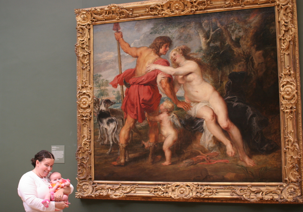 Fitting. When she’s older and we explain this photo we’ll tell her she just didn’t want to leave all that art. I also had my point and shoot in case my attempts with a real camera crashed and burned, so Meredith helped us squeak out these last photos in the Rubens room with a settled H. She doesn’t stay cranky for too long.