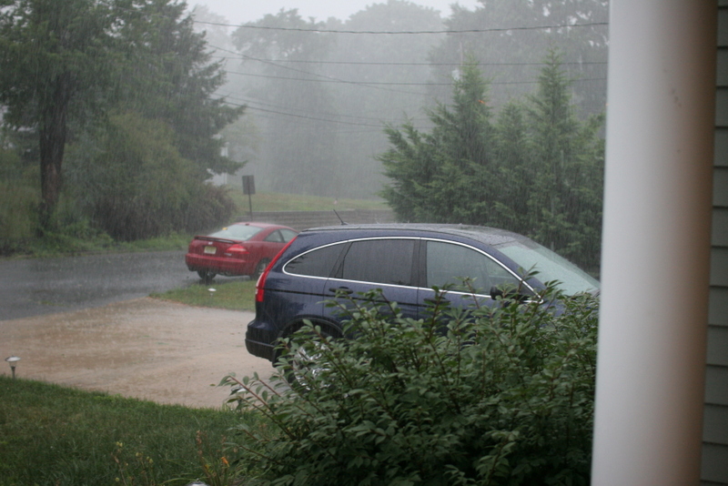 We had a horrible storm here yesterday. Thunder, lightning, a big pelting hailstorm. A nearby crack of lightning killed my computer. It’s completely fried, along with two other gadgets and the network ports they were attached to in Adam’s technology cave (also known as the laundry room closet). I’m currently posting from our library computer, which I’ve usurped until my new parts get here and Adam can fix my motherboard (I sound like I know what I’m talking about, right?).