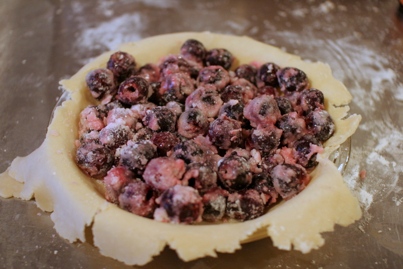 I used Smitten Kitchen’s Sweet Cherry Pie recipe from a few years ago, with the Pate Brisee crust that is my complete go-to pie crust now. I only had 3 tablespoons of cornstarch, so I used flour to make up the last tablespoon as per the directions here. I worried that the pie would taste like flour, but pies bake for so long it’s not a problem. It didn’t make my pie filling look wet and juicy going in, though. But it was all good in the end.