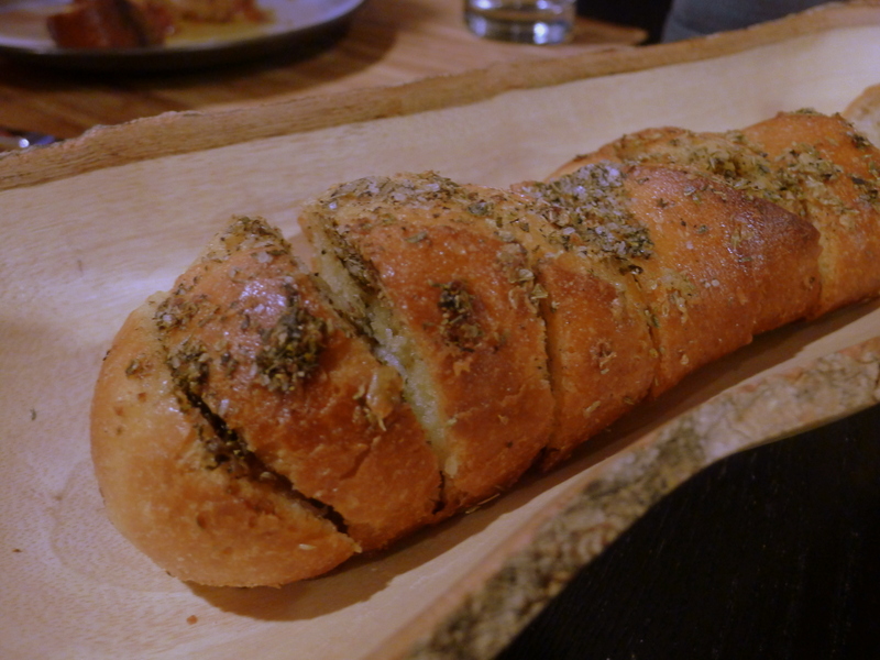 I baked off a loaf of the frozen Whole Foods baguettes I keep in the freezer and then followed all the directions. Preheat the oven to 375. Slice the bread almost through to the bottom but not quite. Melt 4 Tbsp butter with 1 Tbsp olive oil. Then add 2-3 minced garlic cloves and 1/2 tsp salt. Cook and stir for 2 minutes, then add 2 Tbsp parsley (or whatever herbs you want). Spread the mixture between the slices, wrap the loaf in foil, and bake for 15 minutes. Unwrap it and crisp it in the oven for another 5 and eat it hot.