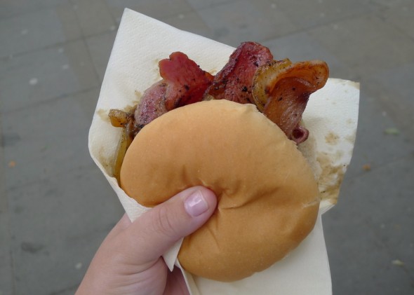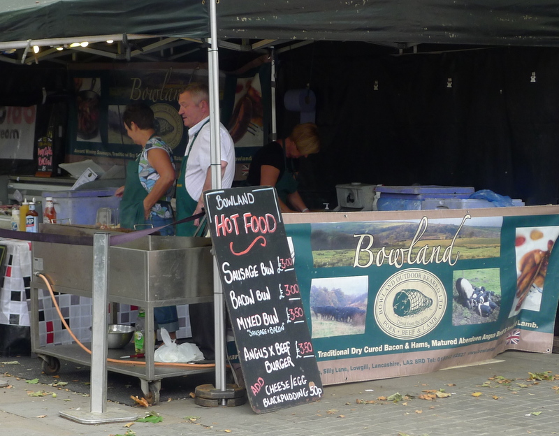 I knew I’d be on my own for dinner, so I’d hoped to get something to cook. But it was mostly every kind of sausage you could possibly imagine. And bacon. I’m not complaining, this bacon bun from Bowland Outdoor Reared Pork with grilled onions was pretty outstanding.