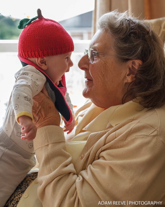 From there we headed to nearby Blackburn, where Ian’s mom Freda lives. I’d never met Freda before, but I can say now that she is one of my absolute favorite people. She is sharp as a tack, and happy to tease Ian when he starts with her. I love her. And I love this photo Adam took at her house.