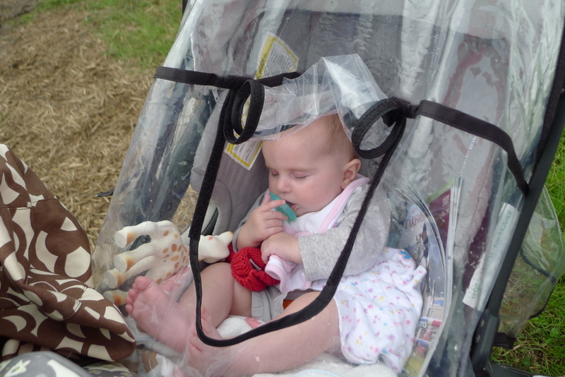 It was drizzly that day (of course it was!), so H tried out her new rain cover. She loves this thing.