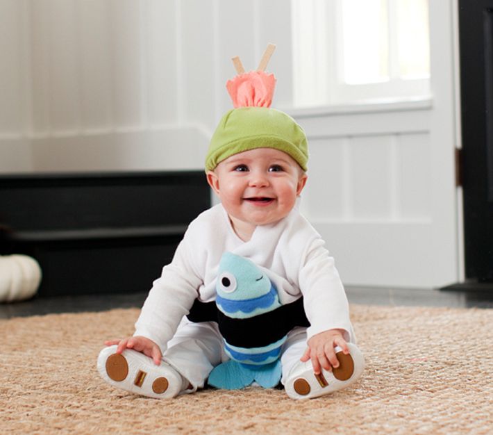 But let’s face it, life is short. And my maternity leave is about to end. And there are 500 things on my mind at the moment. And, frankly, the store-bought costumes look way cooler than anything I could make right now. I didn’t want the good costumes to sell out while I futzed around making everything harder. I think H will grow up knowing her mom is crafty and feeling that homemade love in a million other ways than just her Halloween costume. Maybe this realization will even help me finally make her a quilt, rather than just obsessing about making the “perfect” one. Because, if I’m honest, for all the love I felt in those costumes I also remember taking the headpieces off halfway through trick or treating because I was hot. Or whining that something was itchy. Or forgetting important bits at home right before the parade. Nothing is “perfect,” but that doesn’t mean it’s not wonderful. So this is what I’ve ordered for H’s first Halloween costume: practical (she’ll wear all of it without fuss), funny, and adorably offbeat: