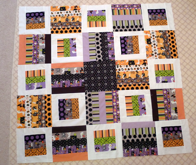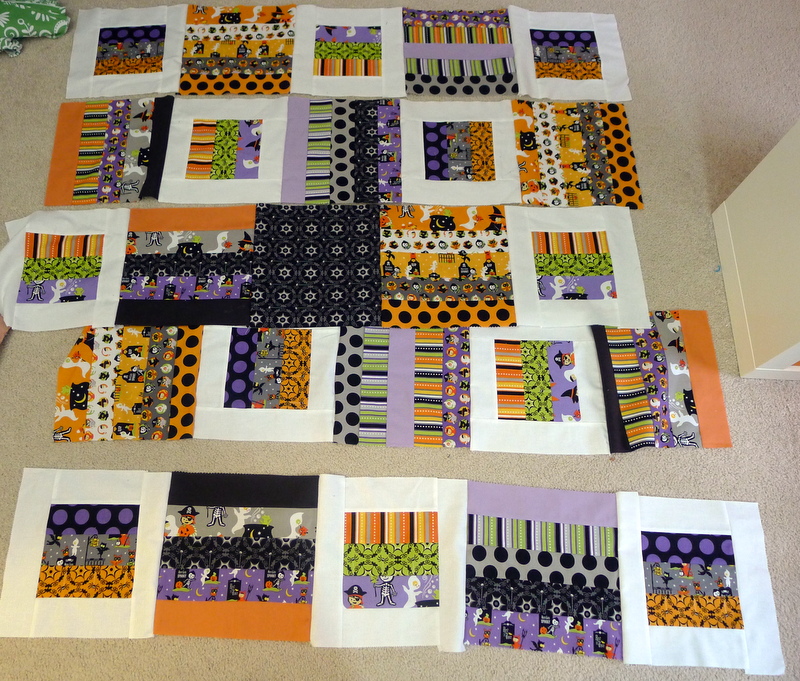 And this quilt was no exception. I realized how wonky it was as I was squaring up each row, and I decided that’s part of why I loved it. Besides, it’s Halloween. Everything is supposed to be a little off center.