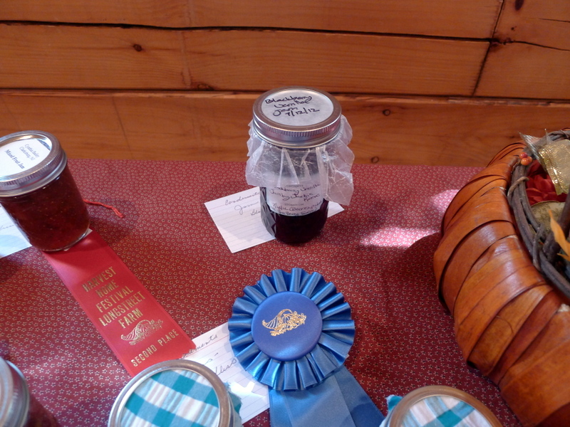 Then that Sunday, the 30th, it was time for the Harvest Home Festival and the jam competition! I can’t believe I never posted about that. All the competitions were judged inside this great log cabin room at Longstreet Farm.