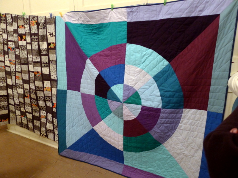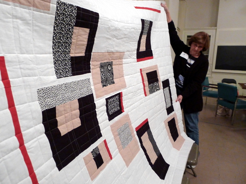 You guys! I’m so excited about this, there is now a Jersey Shore Modern Quilt Guild. I’ve been driving all over the universe for the past few years trying to get involved with the Philly chapter  (unsuccessfully, I haven’t been to a meeting in 2 years) and the NYC chapter (successfully). And now there’s one near my house. The first meeting was last Wednesday, and I was so thrilled to be able to go. I met some great ladies there, saw some beautiful quilts, even won a door prize.
