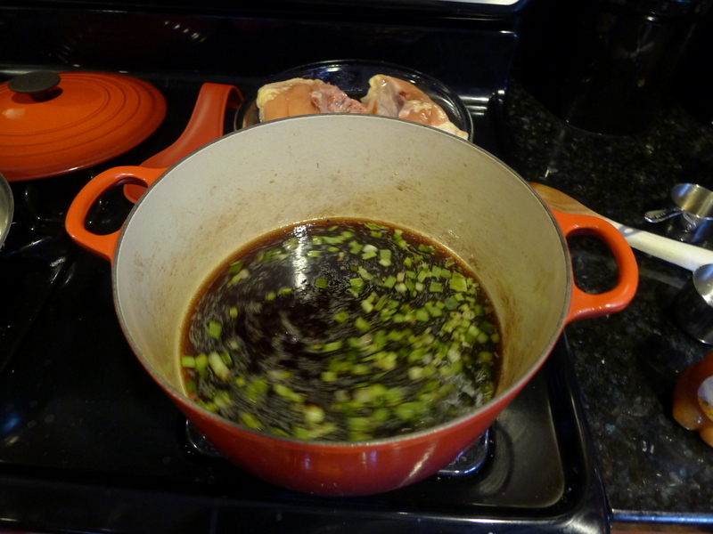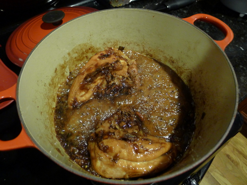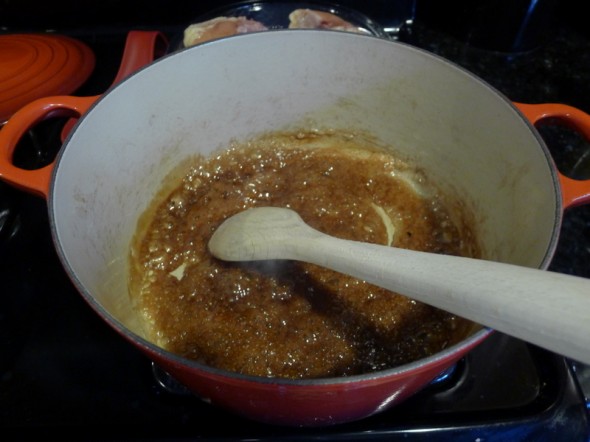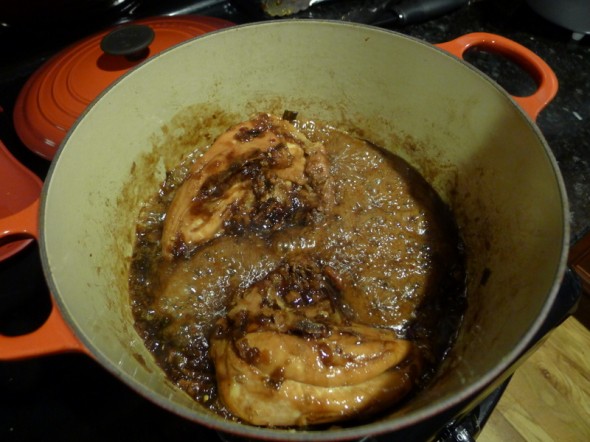 This great Vietnamese dish was in the September 2012 issue of Food and Wine. And you know, this was one of those delicious examples of really good food that looks nothing like the recipe’s photo. I glazed and glazed and just could not get that really great sticky coating on this chicken. It was amazing, but with a runny sauce. I also used chicken breasts instead of legs, and fewer pieces–but I still made the full amount of sauce, I was too lazy to adjust it. So I know that played a large part, but still. Really good.