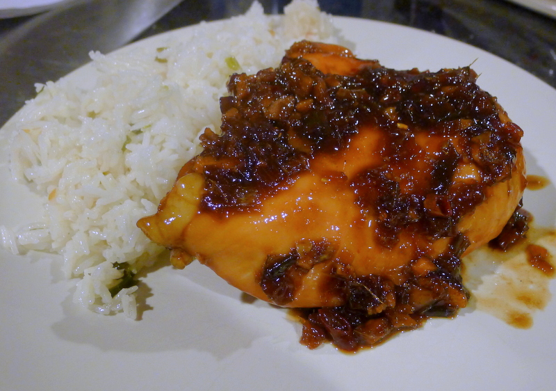 Caramelized Ginger Chicken with Sticky Rice (adapted from original recipe)