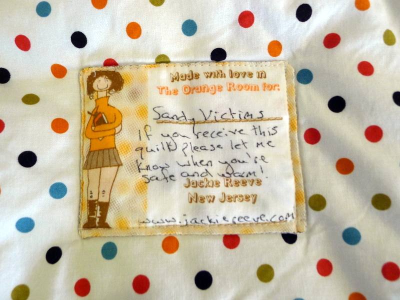 Once we were connected back into the outside world, I finally started reading the horrible storm stories. Like this. And this. And all of these. I couldn’t stop thinking about how lucky we were. To live far from the water, to have gotten power back so quickly, to not have been walking along when a tree fell on us. So then I wanted to know what we could do to help our community. I spent Sunday afternoon and Monday morning making 6 baby quilts, which I delivered to the donation center the county set up along with baby food and diapers, bottled water, etc.