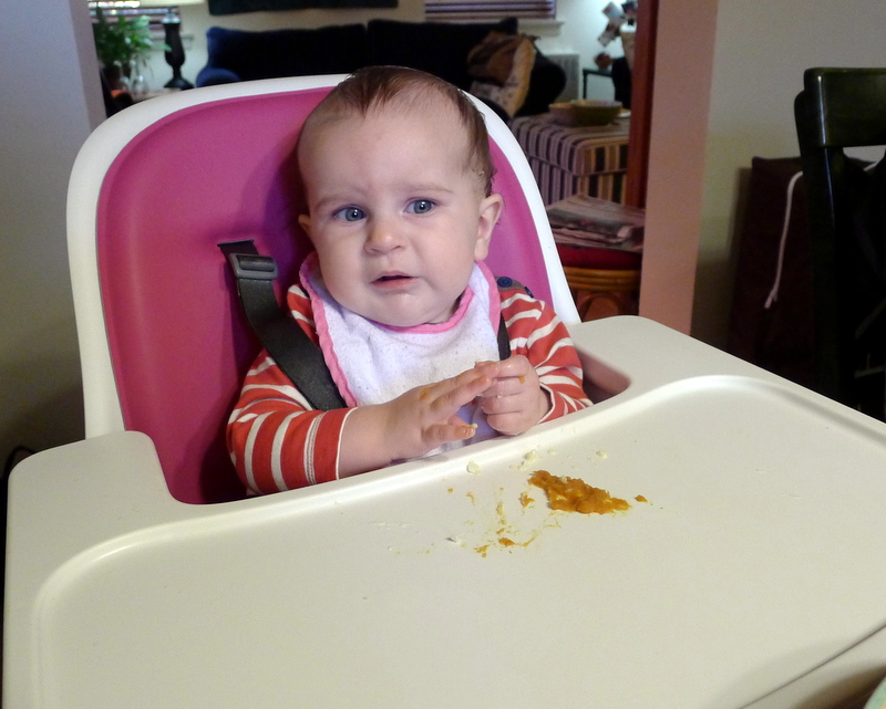 We went up to my mom’s in North Jersey for Thanksgiving last week, and it was a really wonderful day. H and her little cousin CJ (who is NOT so little anymore) hung out, and we even got her to lick a spoon of my mom’s sweet potato casserole. H is 8 months old and still refuses to eat anything but breast milk (and the occasional bottle of formula, we’re trying to get her used to SOMETHING).