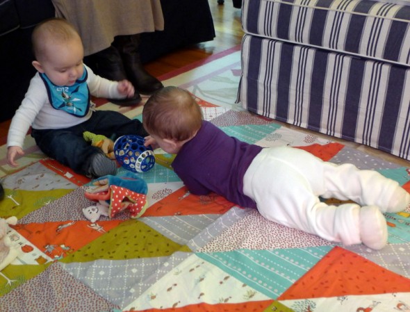 It also turns out that H is a complete bully who steals her cousin’s toys. She took that football and crawled away with it, and poor CJ can’t crawl after her yet..