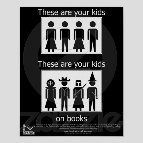My fabulous and amazing mentor Dee sent this out today, and I love it. Zazzle is now selling prints, tees, bumper stickers with this Burning Through Pages graphic (in addition to some other equally outstanding book nerd goodies). I support everything about this.