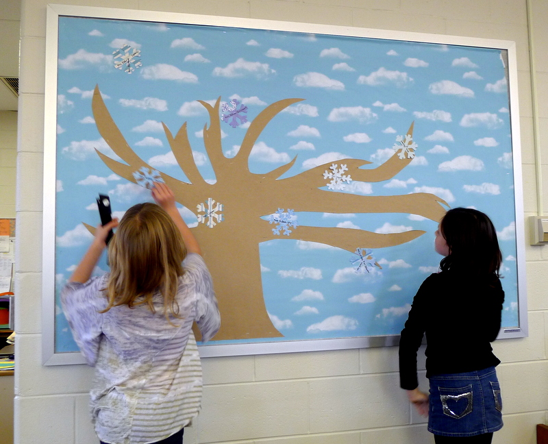 I love this time of year at school. Every year during the short Thanksgiving week I have the 3rd and 4th graders help me change The Library Tree from fall to winter. It’s a small thing, but I love those rituals.